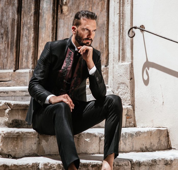 Realizzato in drop 8 regolare con vestibilità slim adatto per cerimonia.